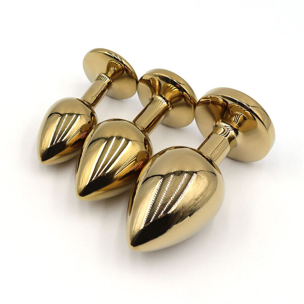 Металлическая анальная пробка с кристаллом — набор размеров S/M/L